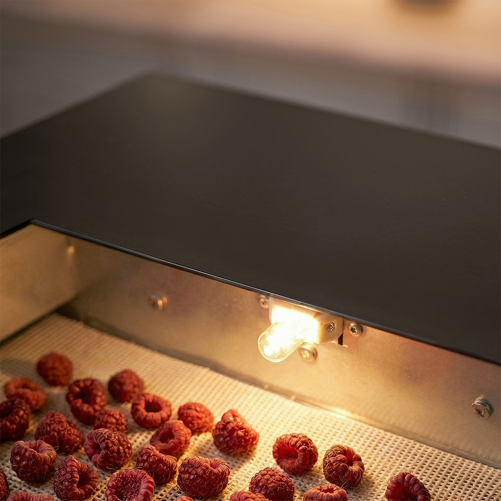 Во время работы камеру можно подсвечивать мягким светом, чтобы следить за процессом, не открывая дверцу и не нарушая температурный баланс.