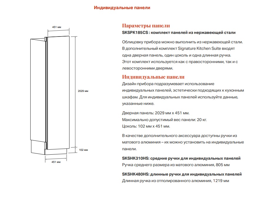 - Комплект боковых панелей при установке не заподлицо: SKSFK800CS