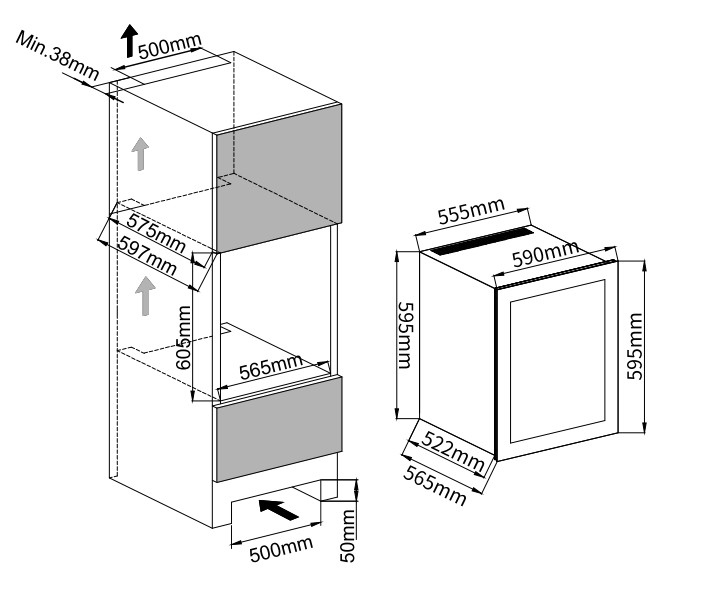 - Реверсивная дверь, которая позволяет устанавливать два винных шкафа рядом;